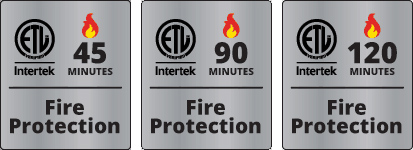 ETL’s fire protection labels for 45 minutes, 1 1/2 hours and 2 hours are listed below.