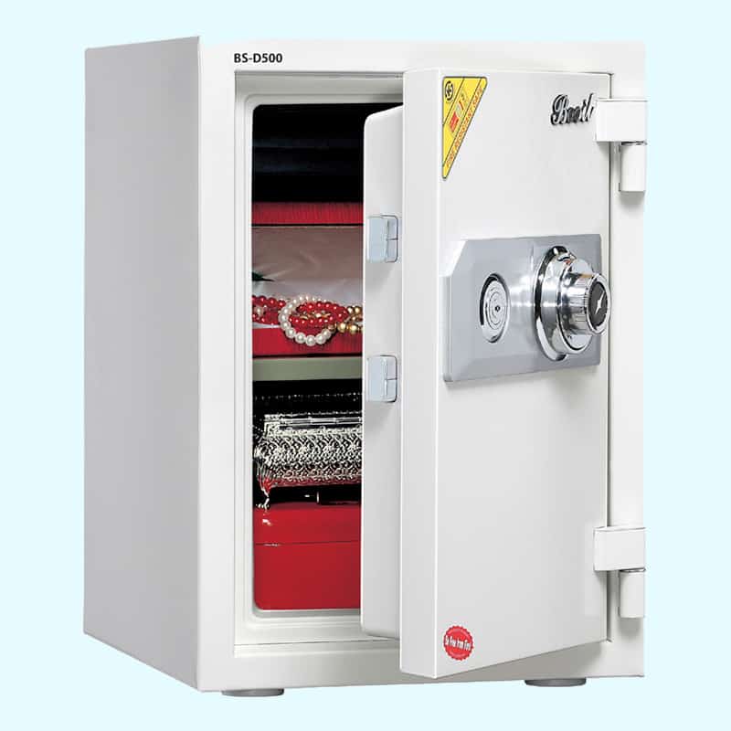 These safes have been fire rated at 1800°F for 1 hour. Available with electronic keypad lock. Active and inactive bolts prevent the door from being removed and protect the safe from pry attacks. All models have precut central anchoring hole and hardware. All models include center bolt down hole for anchoring.