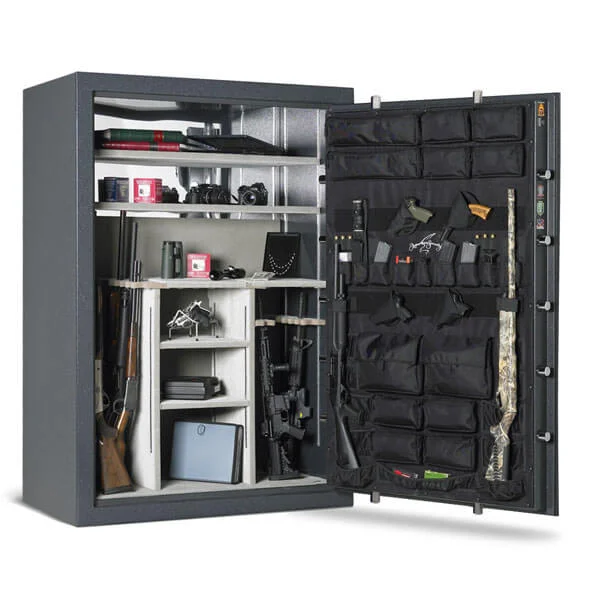 The AMSEC BFX7250 gun safe can hold up to 75 guns and is constructed using 2 layers of solid steel double walls with a heavy-duty body, making it one of the strongest fireproof & burglarproof safes on the market.
