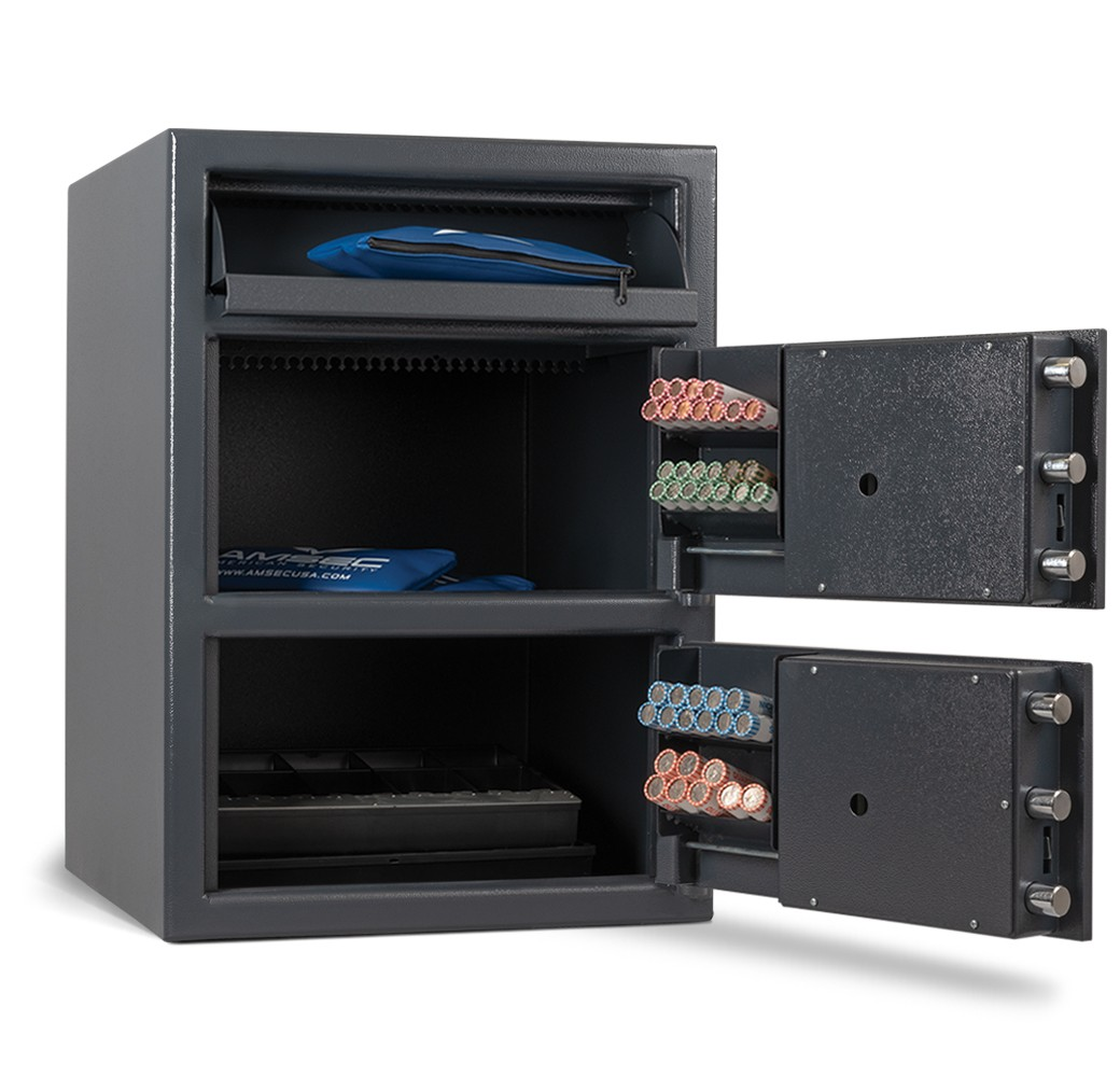 Introducing the American Security MM2820TOP Depository Safe, the ultimate security solution for your valuable possessions and sensitive documents. This top-of-the-line safe boasts a robust construction featuring solid steel doors, anti-pry locking mechanisms, and a drill-resistant hard plate, providing maximum protection against burglary attempts. The MM2820TOP’s user-friendly digital keypad allows for effortless and secure access, while the large drop slot enables seamless depositing of items without needing to open the safe. Designed to meet the highest standards of security, the American Security MM2820TOP Depository Safe delivers uncompromising protection for your business or home, offering you peace of mind and safeguarding your assets for years to come.